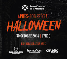 En collaboration avec Humanum, c'est le 30 octobre dès 17h que l'on t'attend au Salon de jeux de Trois-Rivières, pour un Après-job hors du commun! C'est sous la thématique Halloween que tu auras l'opportunité de réseauter! Profite s'en pour te déguiser ou porter un accessoire, qui sais, tu auras peut-être droit à une surprise!